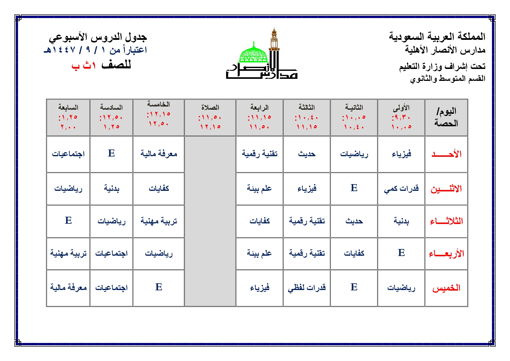 جدول الحصص