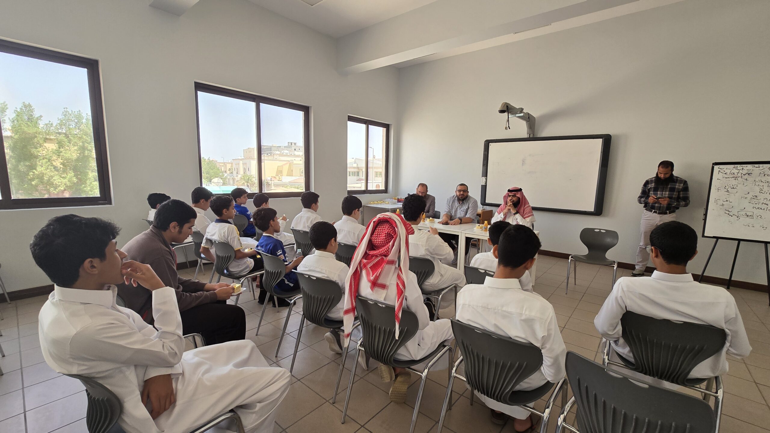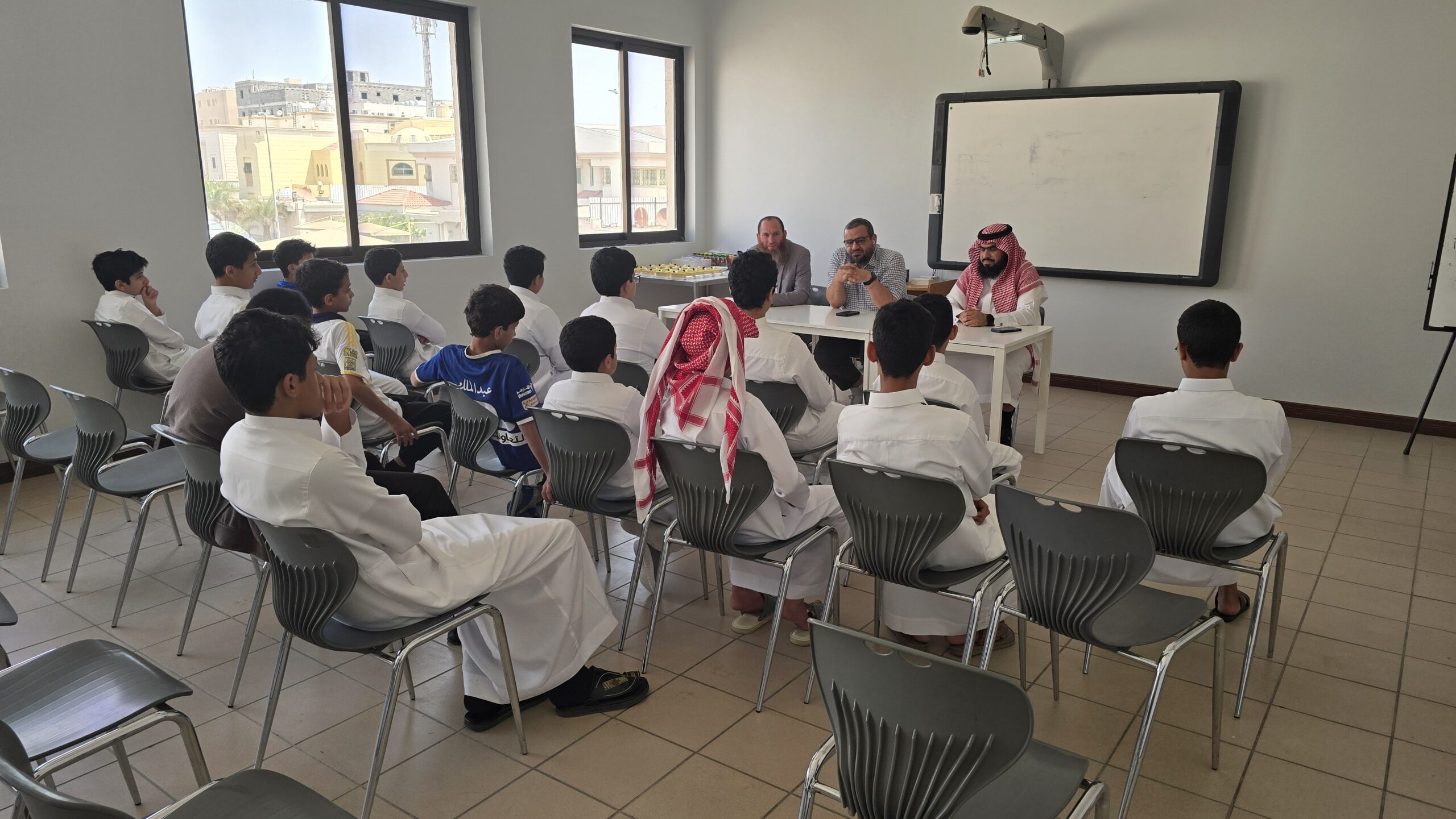 وقد تضمّن اللقاء كلمة توجيهية من قبل إرادة المدرسة وبعض الفقرات التعريفية كحقوق وواجبات الطلبة، وأهمية التحصيل الدراسي، والتي أسهمت في تسهيل اندماج الطلاب الجدد في المجتمع المدرسي، وإيجاد أجواء إيجابية ومحفزة للتعلم والانضباط.