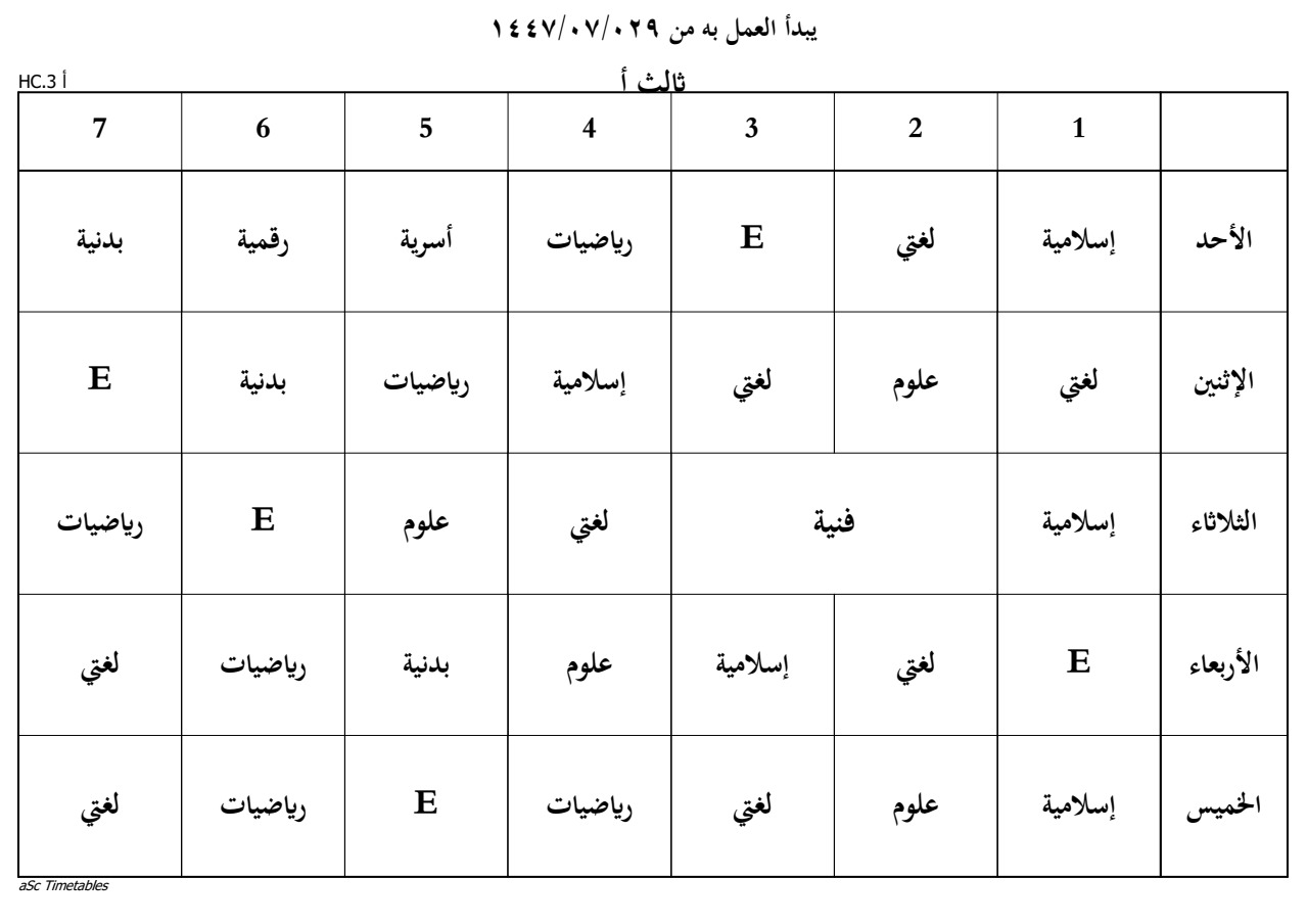 جدول الحصص
