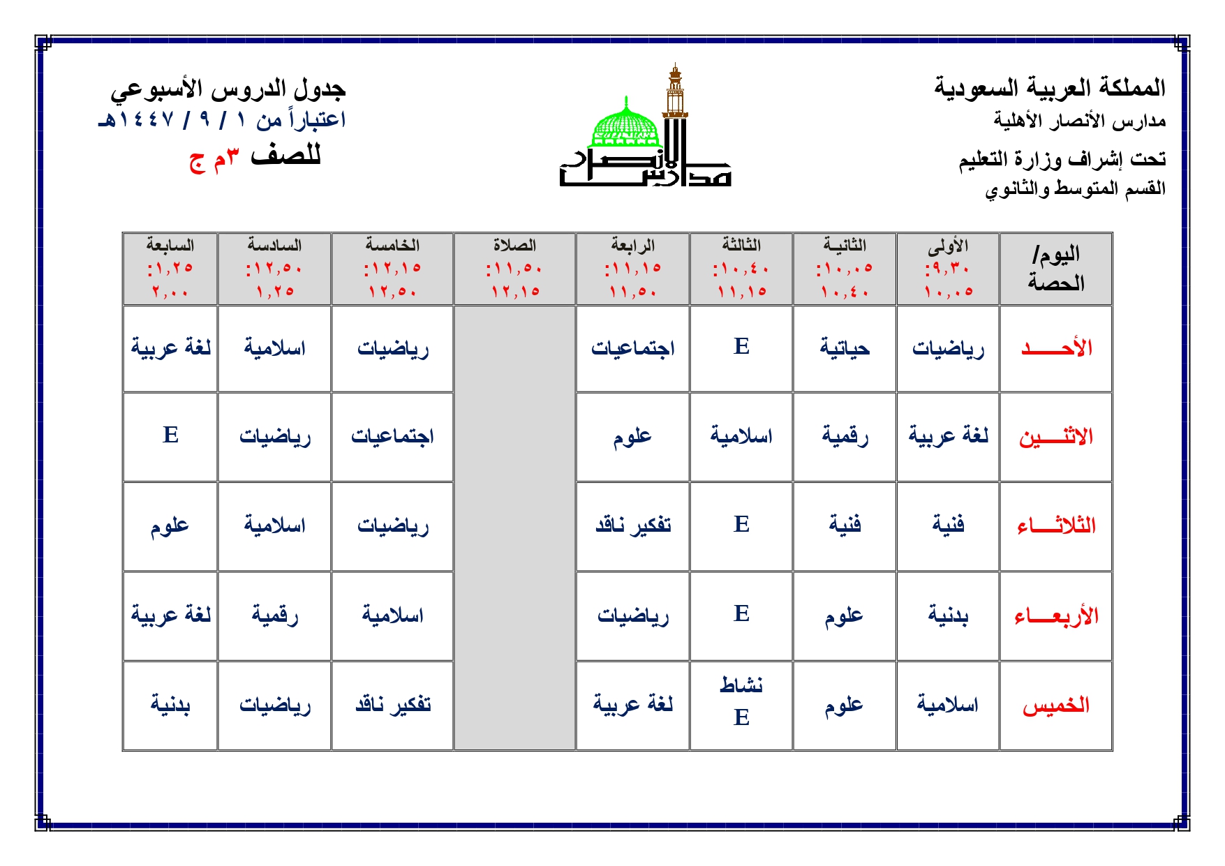 جدول الحصص